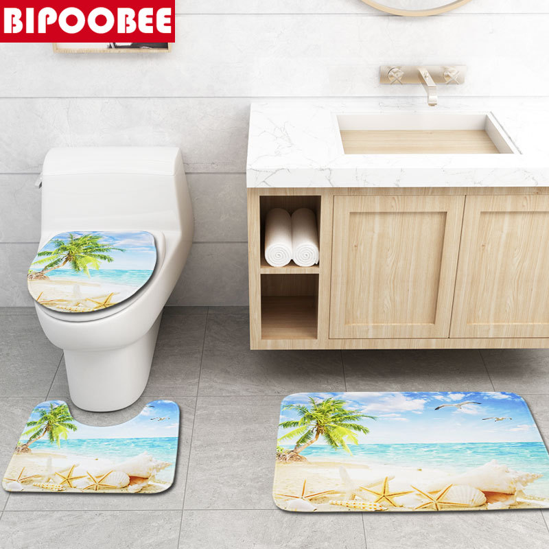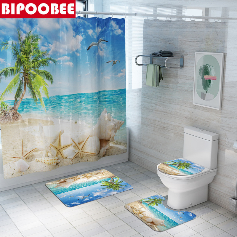 Shower curtain size: 180x180cm / 70.9x70.9in Bath mat set size: Square size: 75x45cm / 29.52x17.7in U shape size: 45x37.5cm / 17.7x14.7in Toilet cover size: 38x35cm / 15x13.7in,Manual measuring, please allow 1 ~ 5 cm error,thank you.