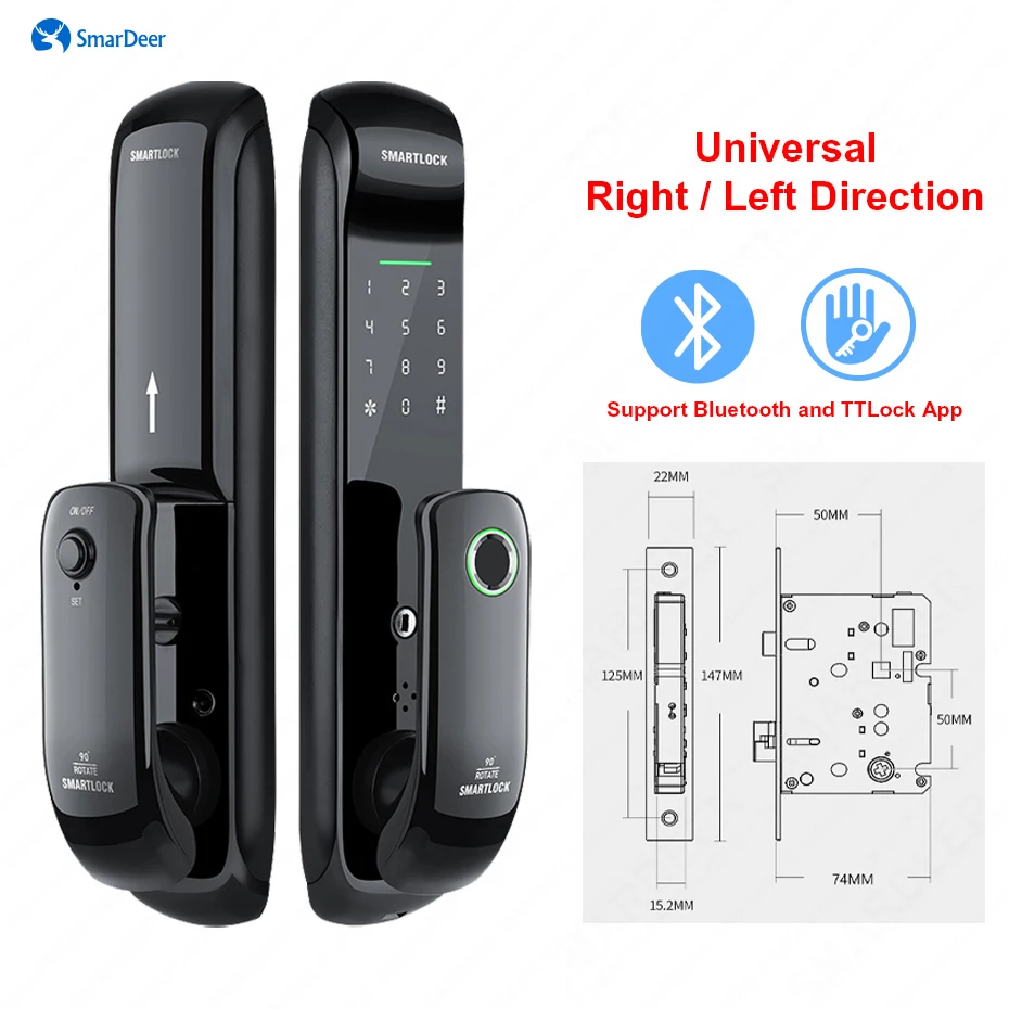 Умный дверной замок SmarDeer для Tuya с WiFi Биометрическим замком отпечатков пальцев с отпечатком пальца/паролем/RFID картой/ключом/разблокировкой приложения
