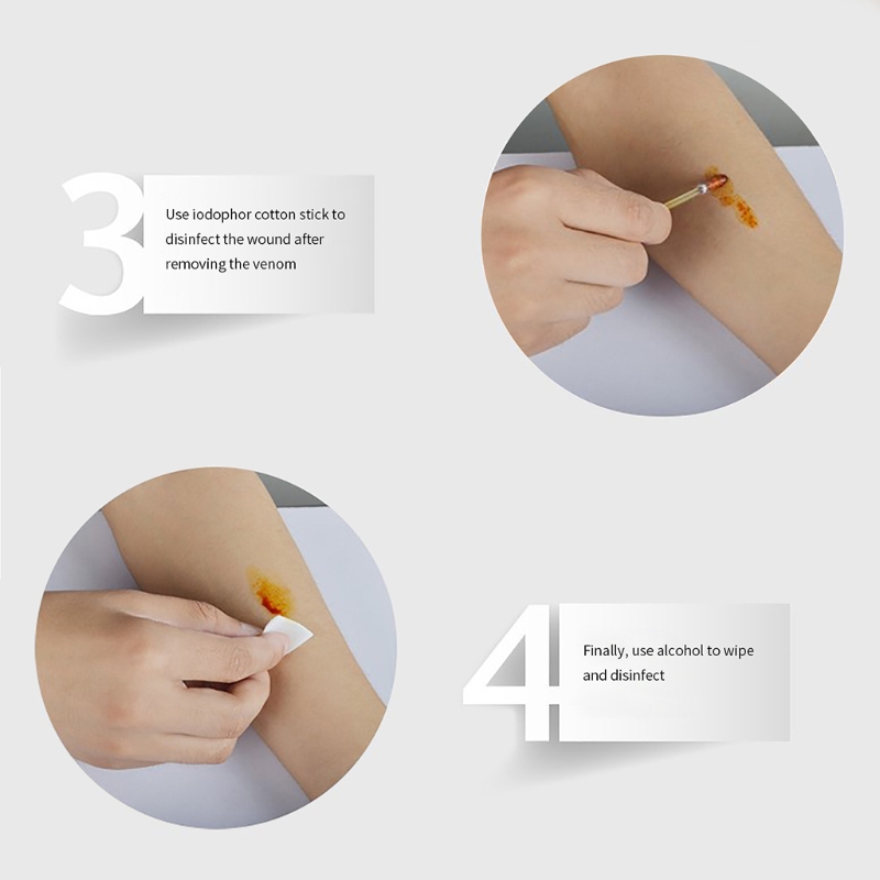 Так легко носить с собой, можно поместить в рюкзак, автомобили, Пешие прогулки или кемпинг снаряжение. После лечения укуса насекомых, мы предлагаем использовать это всасывание в течение 5 минут после укуса.