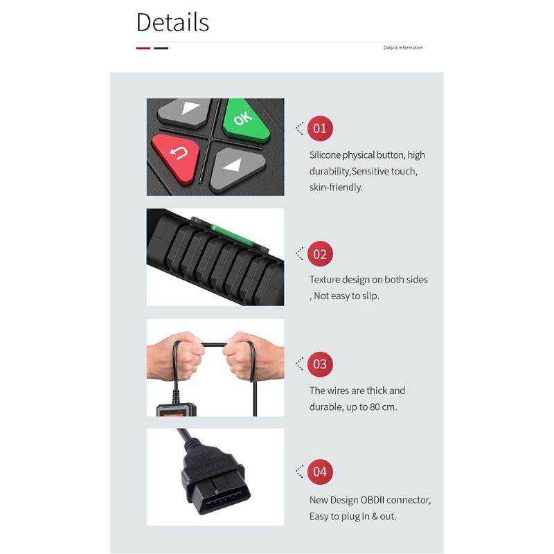 Характеристики: диагностический сканер поддерживает множество функций, таких как коды чтения, коды стирания и сброса, бортовой тест монитора, Чтение информации о транспортном средстве и так далее.
