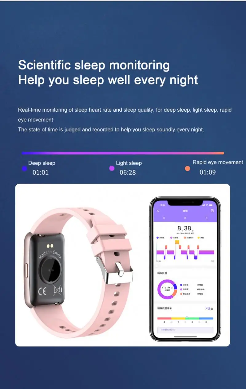 Real-time monitoring of sleep heart rate and sleep quality, judge and record the state of deep sleep, light sleep, rapid eye movement, and time to help you fall asleep soundly every night.