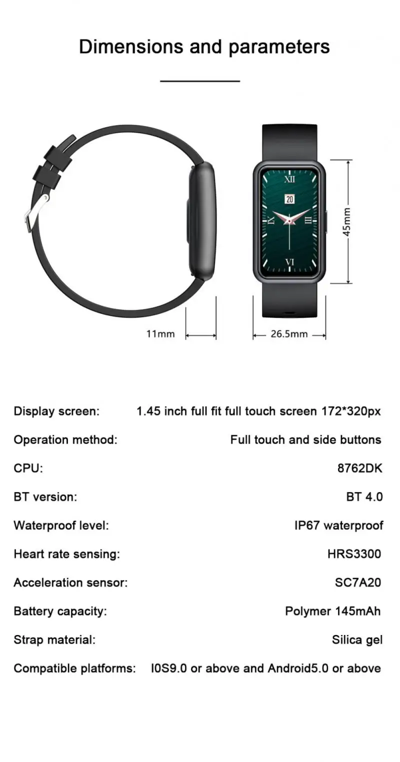 Display screen: 1. 45 inch full fit full touch screen 172*320px