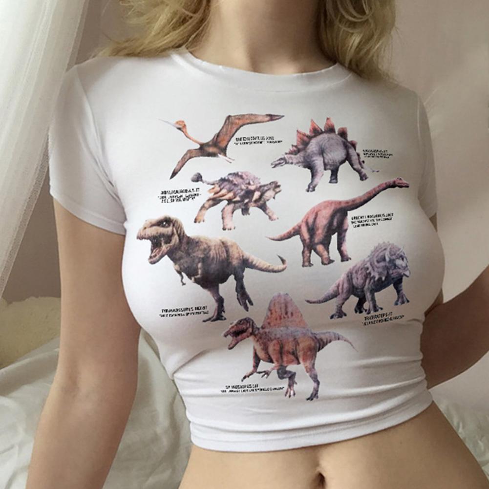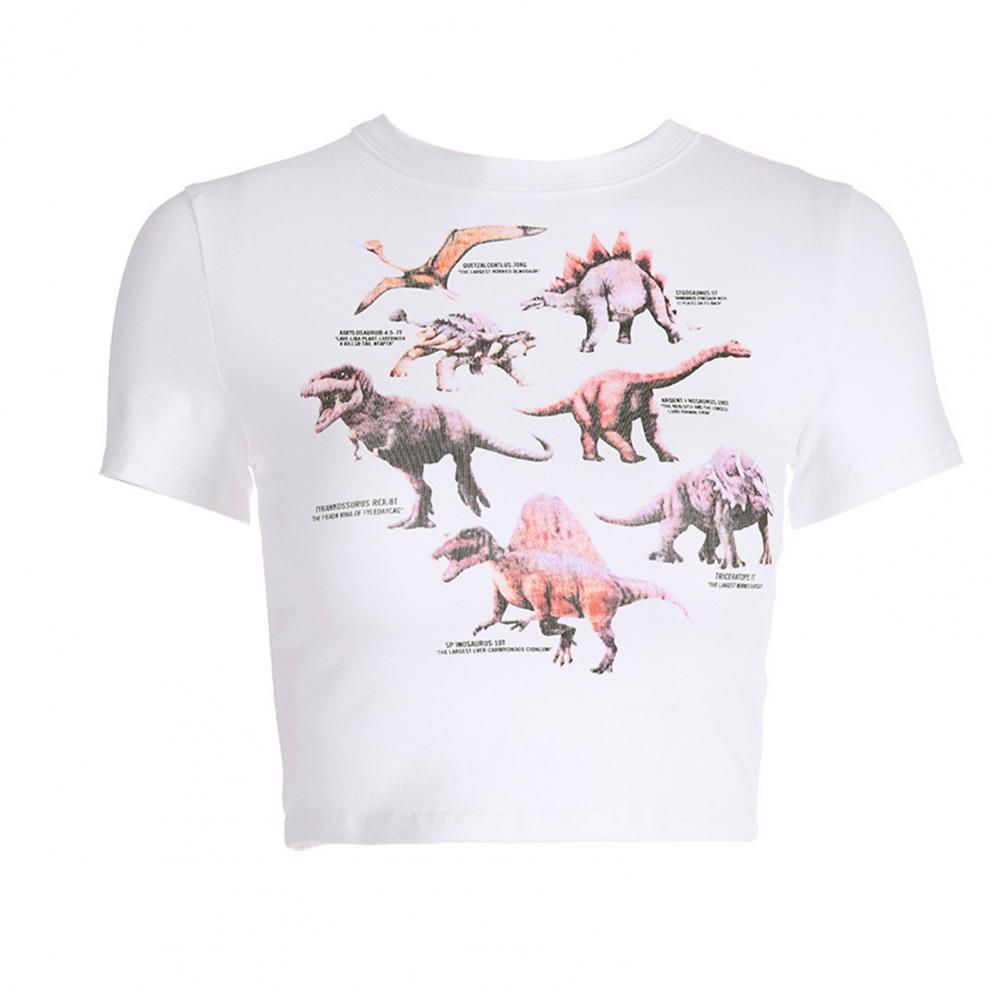 Стильная летняя футболка с изображением динозавра, обтягивающая футболка с короткими рукавами