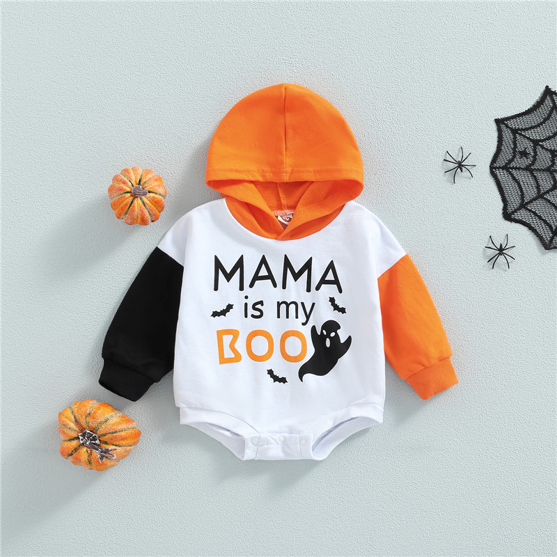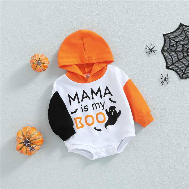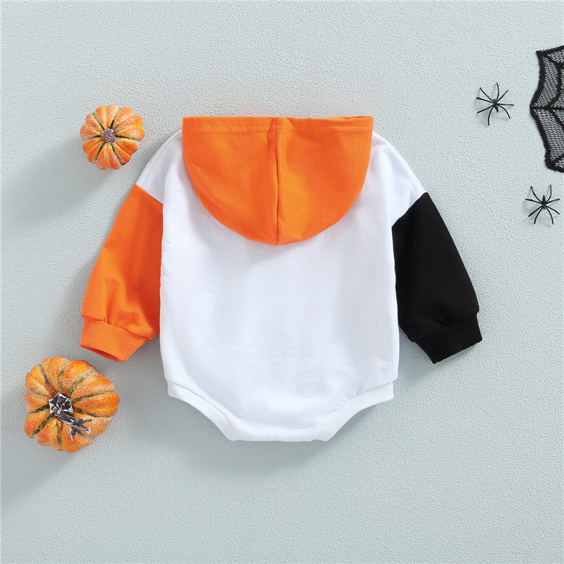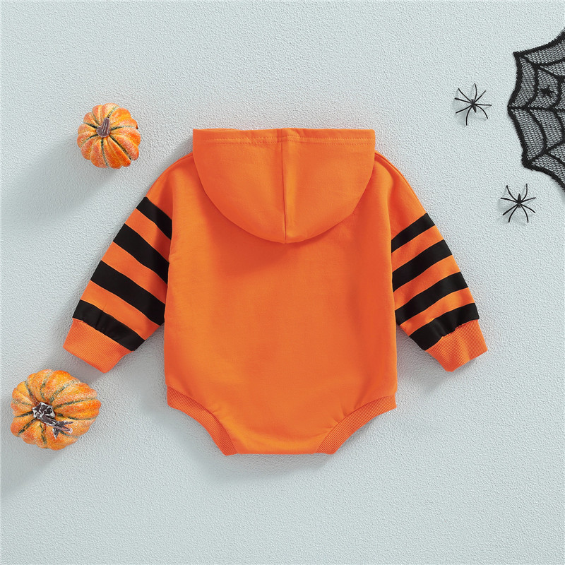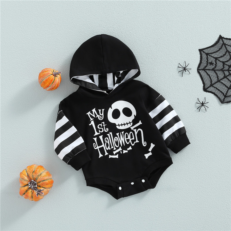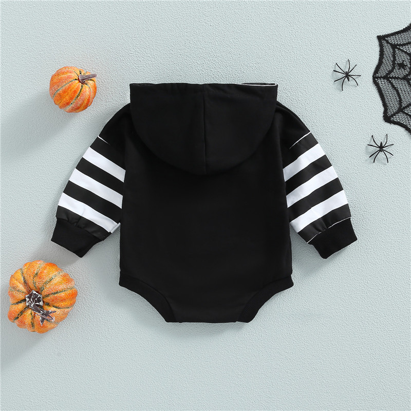Для малышей унисекс Повседневное ползунки, Цвет-Контрастность/в полоску с буквенным принтом с принтом «привидение» с длинными рукавами и комбинезон с капюшоном
