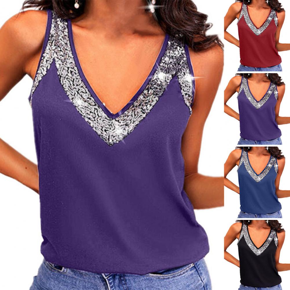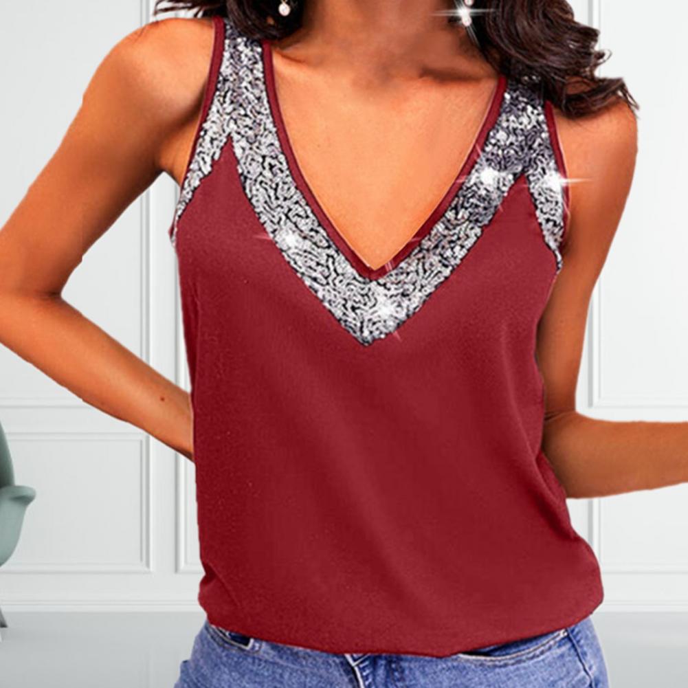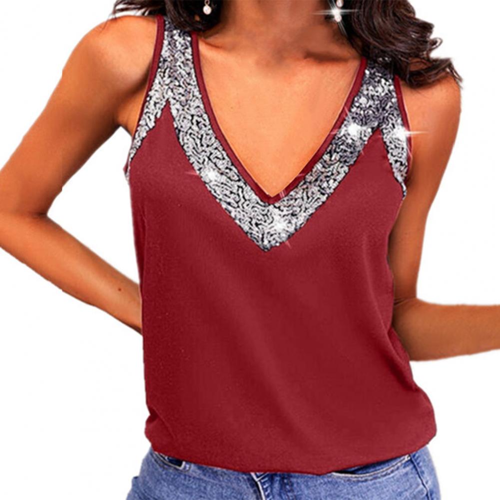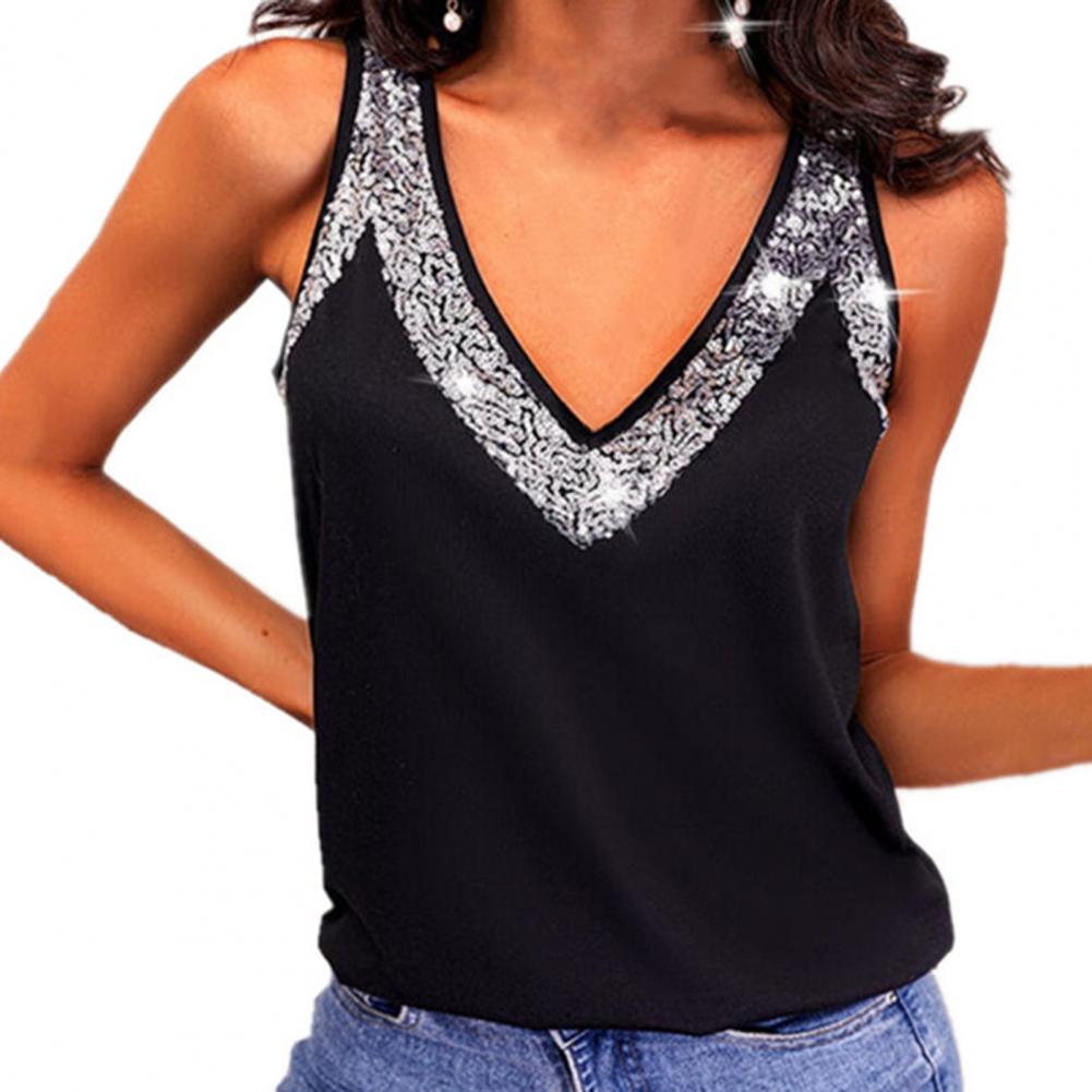 Свободный женский жилет без рукавов с v-образным вырезом, однотонный летний топ с блестками в стиле пэчворк, уличная одежда