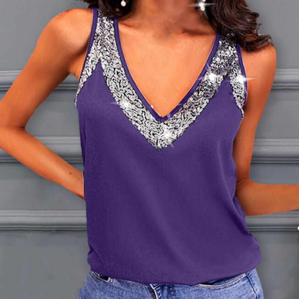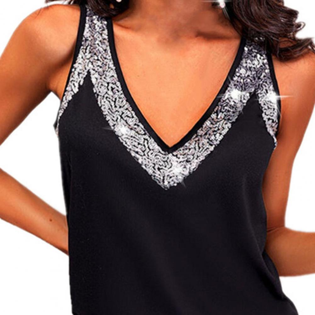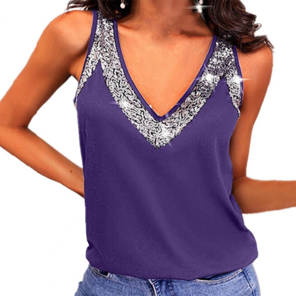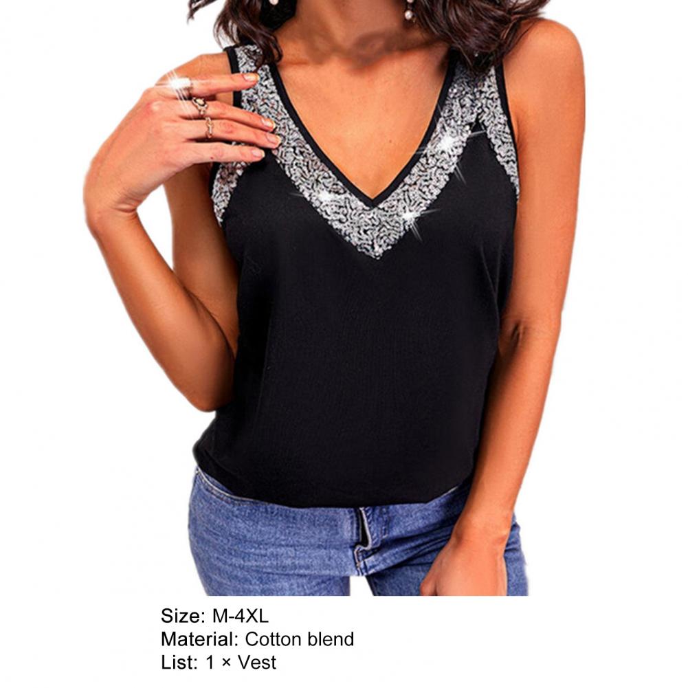 Свободный женский жилет без рукавов с v-образным вырезом, однотонный летний топ с блестками в стиле пэчворк, уличная одежда