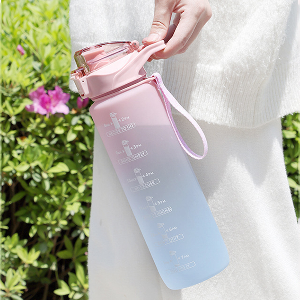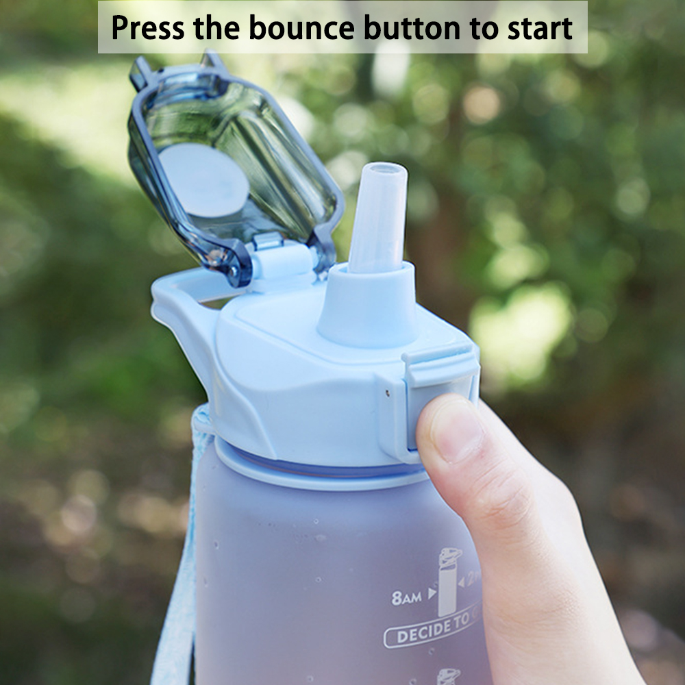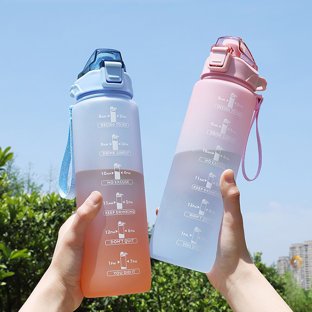 2л/1л бутылка для воды с соломенным временным маркером пластиковая чашка для воды для путешествий градиентный цвет большая емкость матовые бутылки для спорта на открытом воздухе