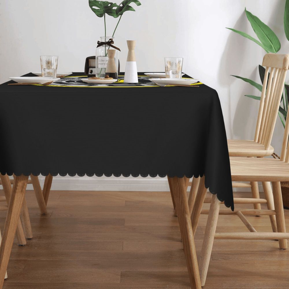 Включает квадратную скатерть с полукруглыми кружевными краями.