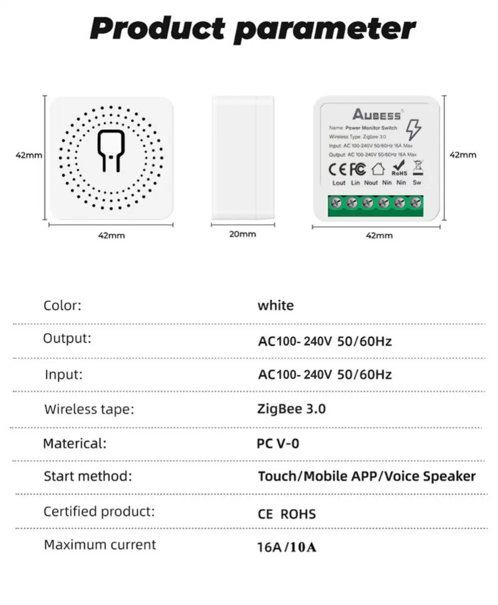 Tuya Zigbee мини умный модуль переключателя с энергетическим монитором 16A таймер беспроводной переключатель умный дом с Alexa Google Home Яндекса