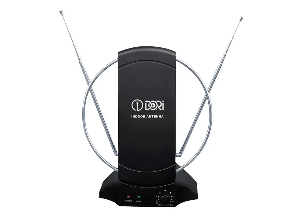 Телевизионная комнатная антенна с усилителем используется для качественного приёма телевизионных сигналов в диапазонах «FM», «VHF» и «UHF». Антенна наилучшем образом приспособлена для работы городских условиях, а используемый широкополосный усилитель значительно повышает качество принимаемого сигнала. Встроенный усилитель с пониженным уровнем шумов оборудован коаксиальным входом для внешней антенны и имеет индикатор включения питания. Дизайн специально разработан для того, чтобы была возможность разместить антенну на любом даже самом видном месте, быстро устанавливается и проста в использовании.