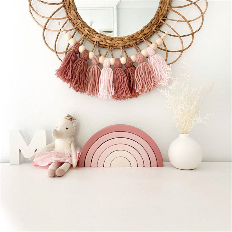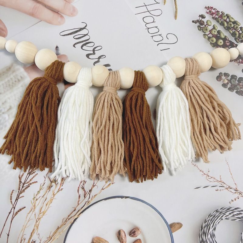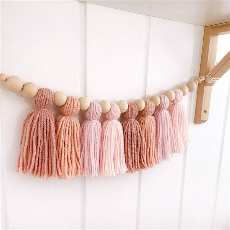 Гирлянда с кисточками выглядит так мило с красочным дизайном, деревянными бусинами и стилем бохо. При нанесении на стену будет тепло.