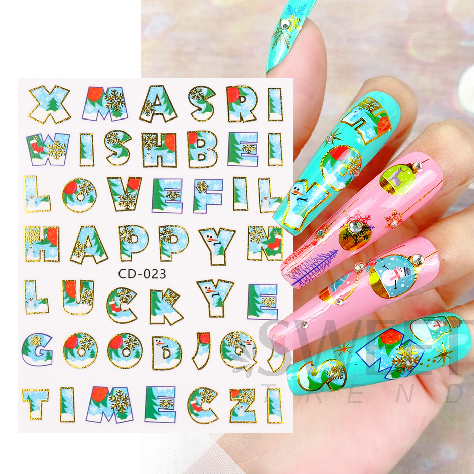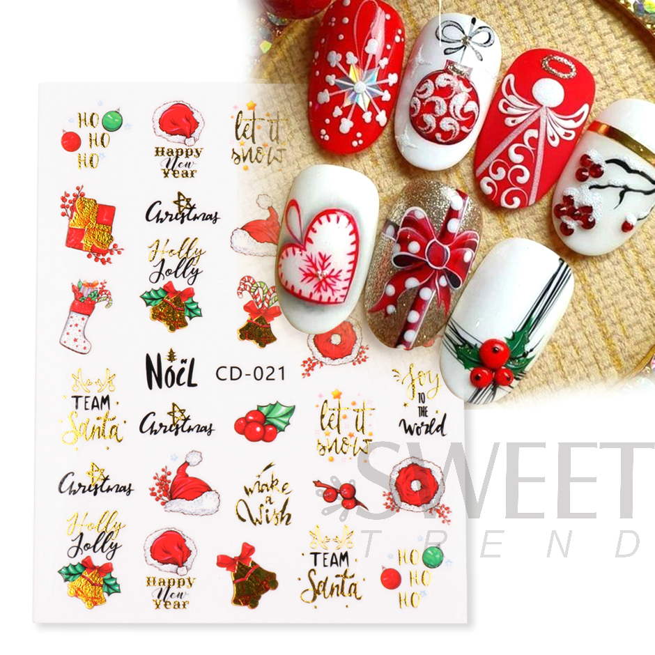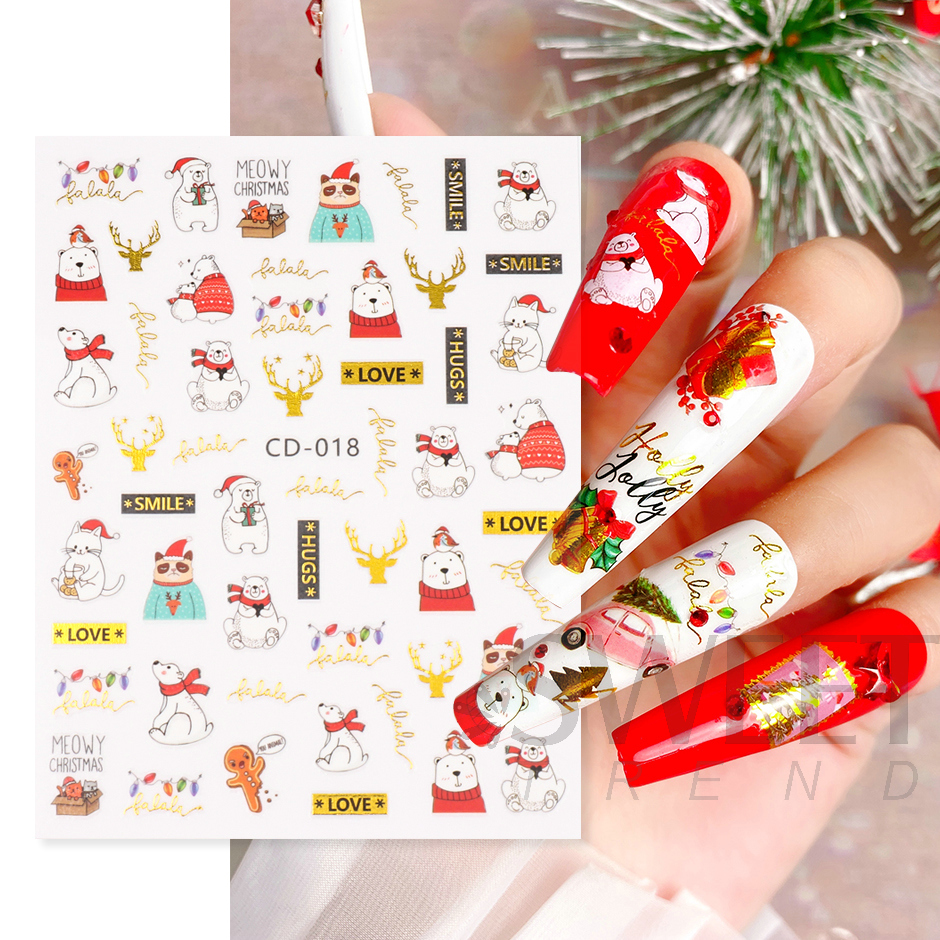 Голографическая Летающий снежинки Nail Art наклейки в виде милого медведя с рисунком рождественского оленя для элемент наклейки с надписью «New Year» для маникюра фольги Декор