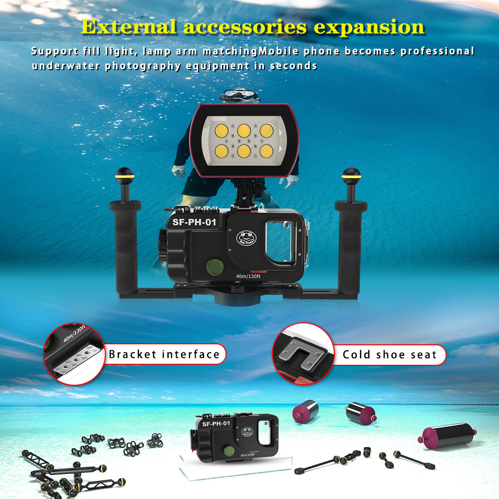 Этот подводный чехол для телефона является профессиональным водонепроницаемым. Вы можете свободно фотографировать или фотографировать под водой 40 м.