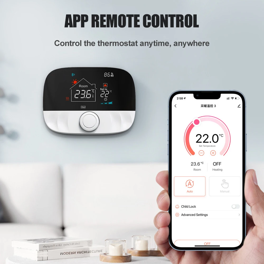 【Контроль приложения 】 умный термостат может управляться на мобильный телефон, прежде чем идти домой. (Приложение: Smart Life)