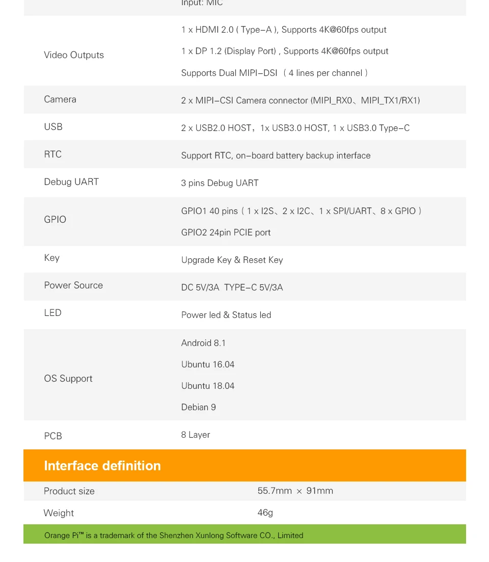 3. В чехол с высокой нагрузкой, такой как множество периферийных соединений или экран, подключенный к интерфейсу MIPI, рекомендуется использовать его с источником питания 5В 4А. Источник питания 5 в 3 А может быть недостаточным.