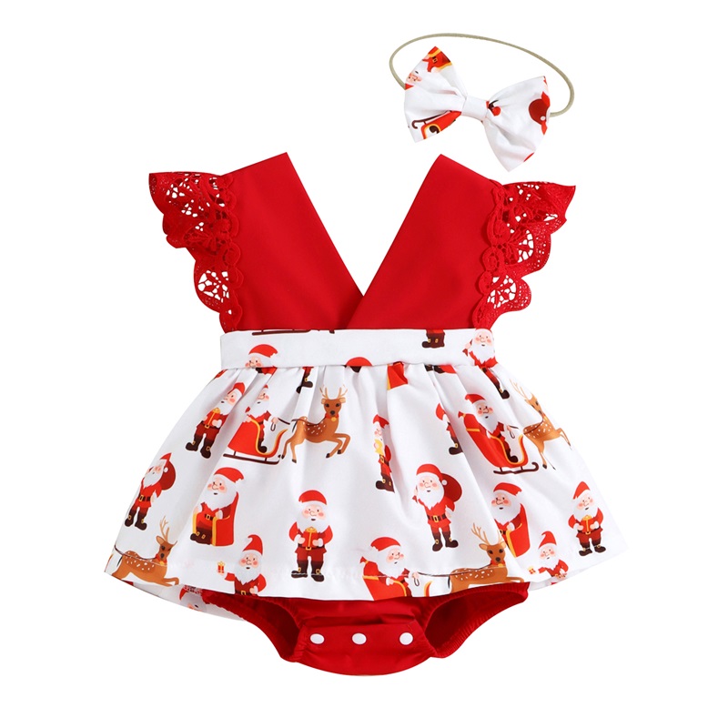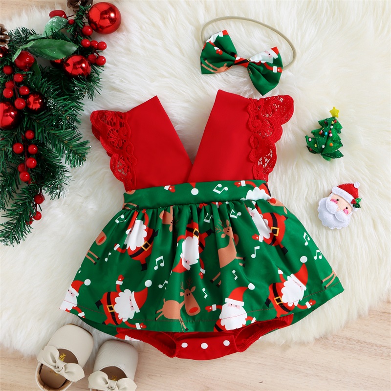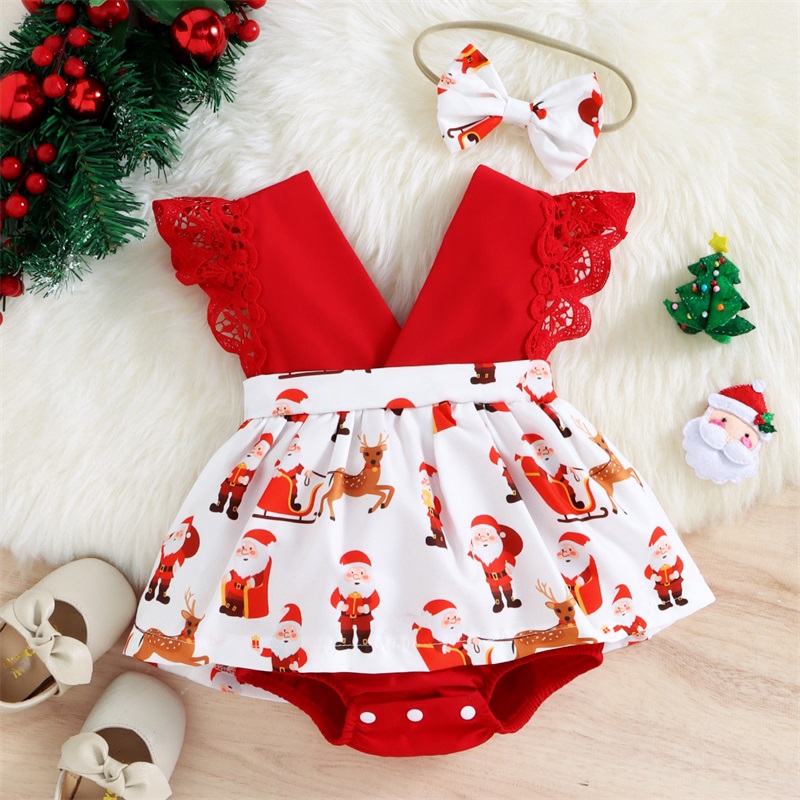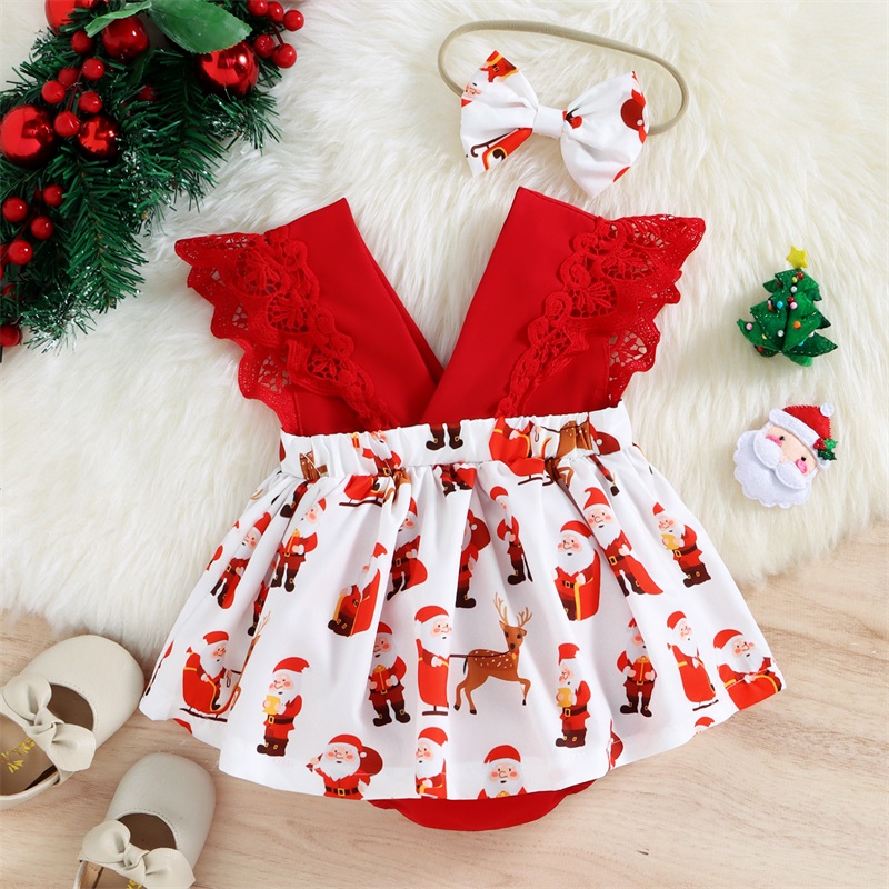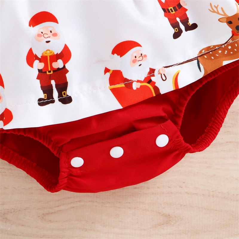 Baby Girl Romper Suit, Fly Sleeve V Neck Plaid Snowflake Print Ruffle Buttons Fall Short Romper + Headband