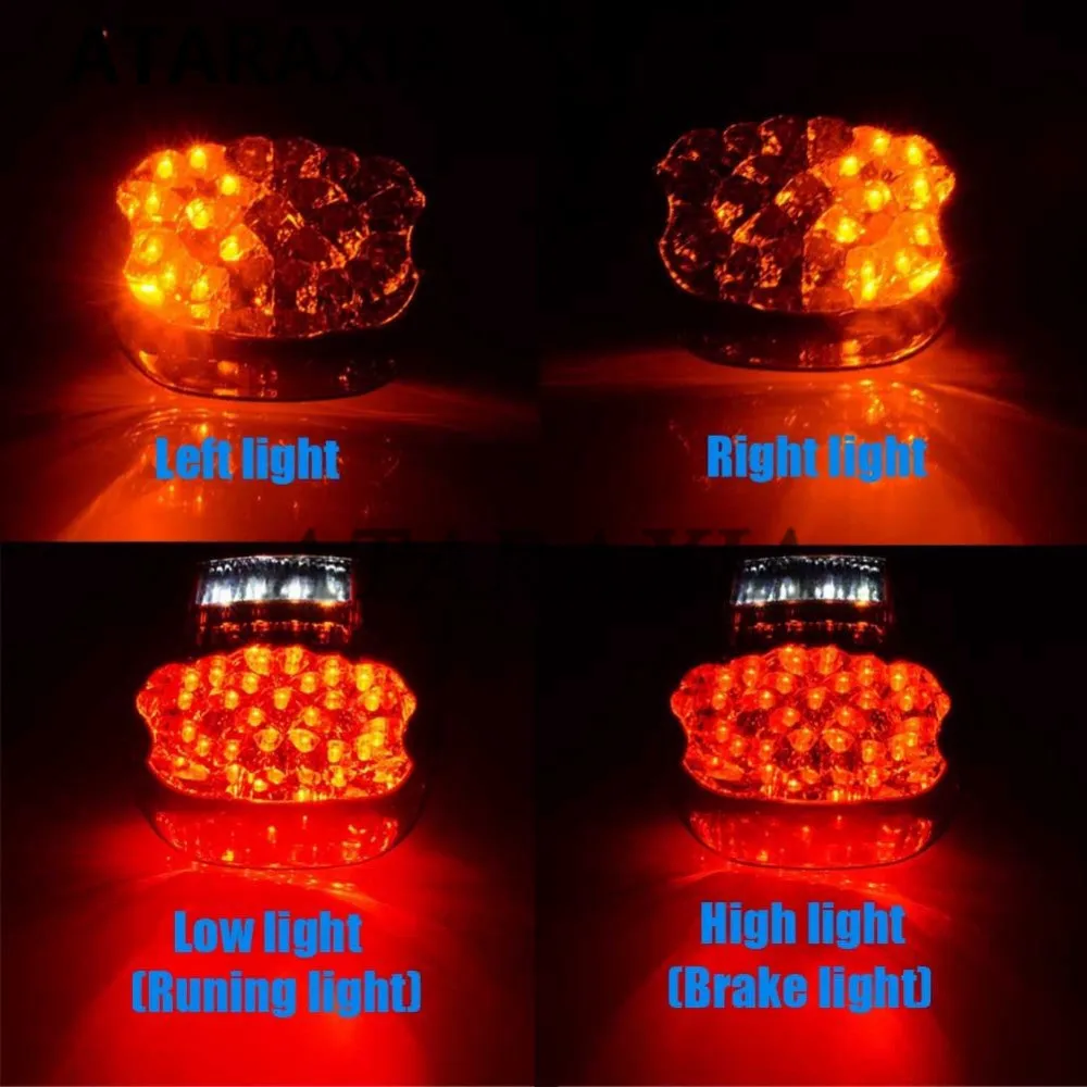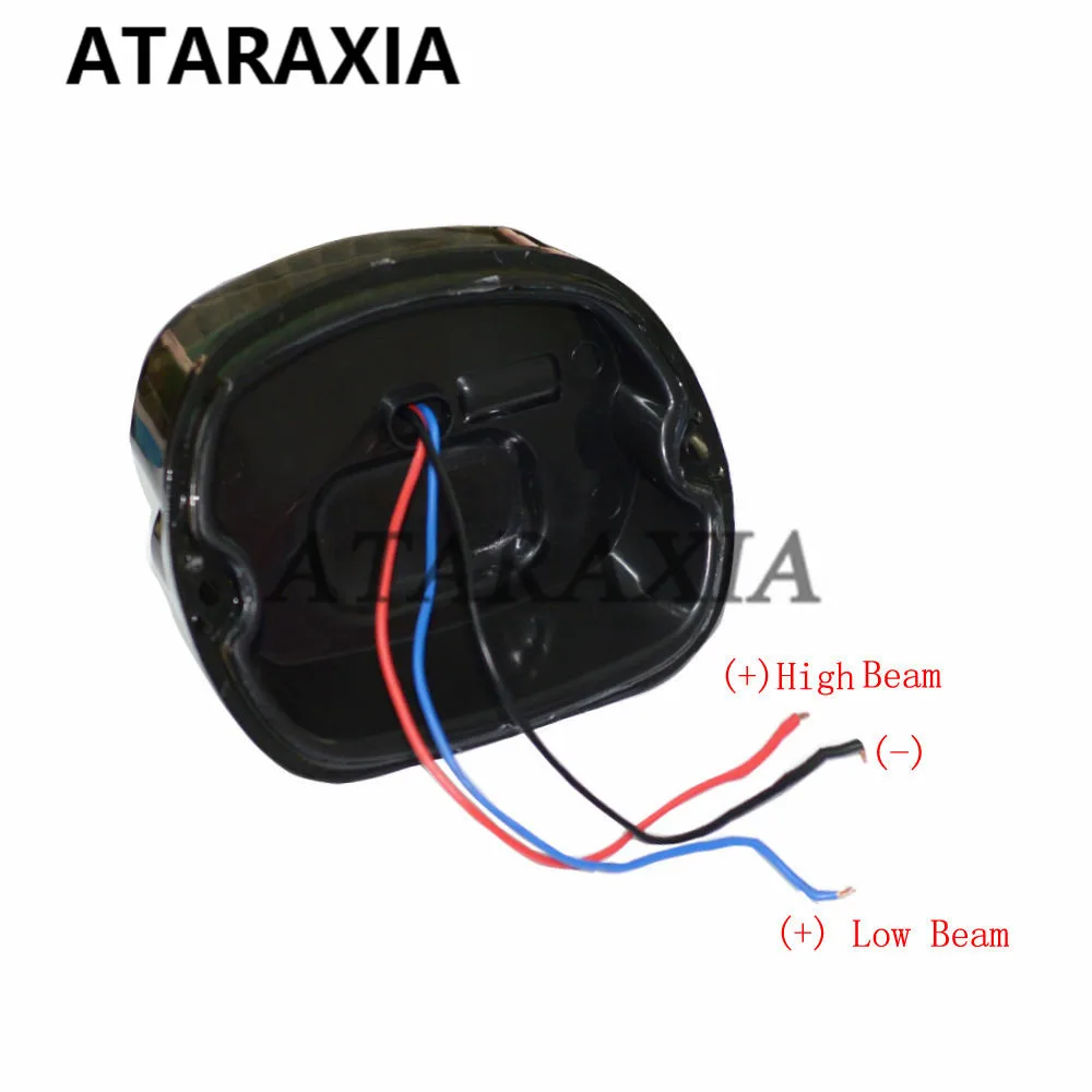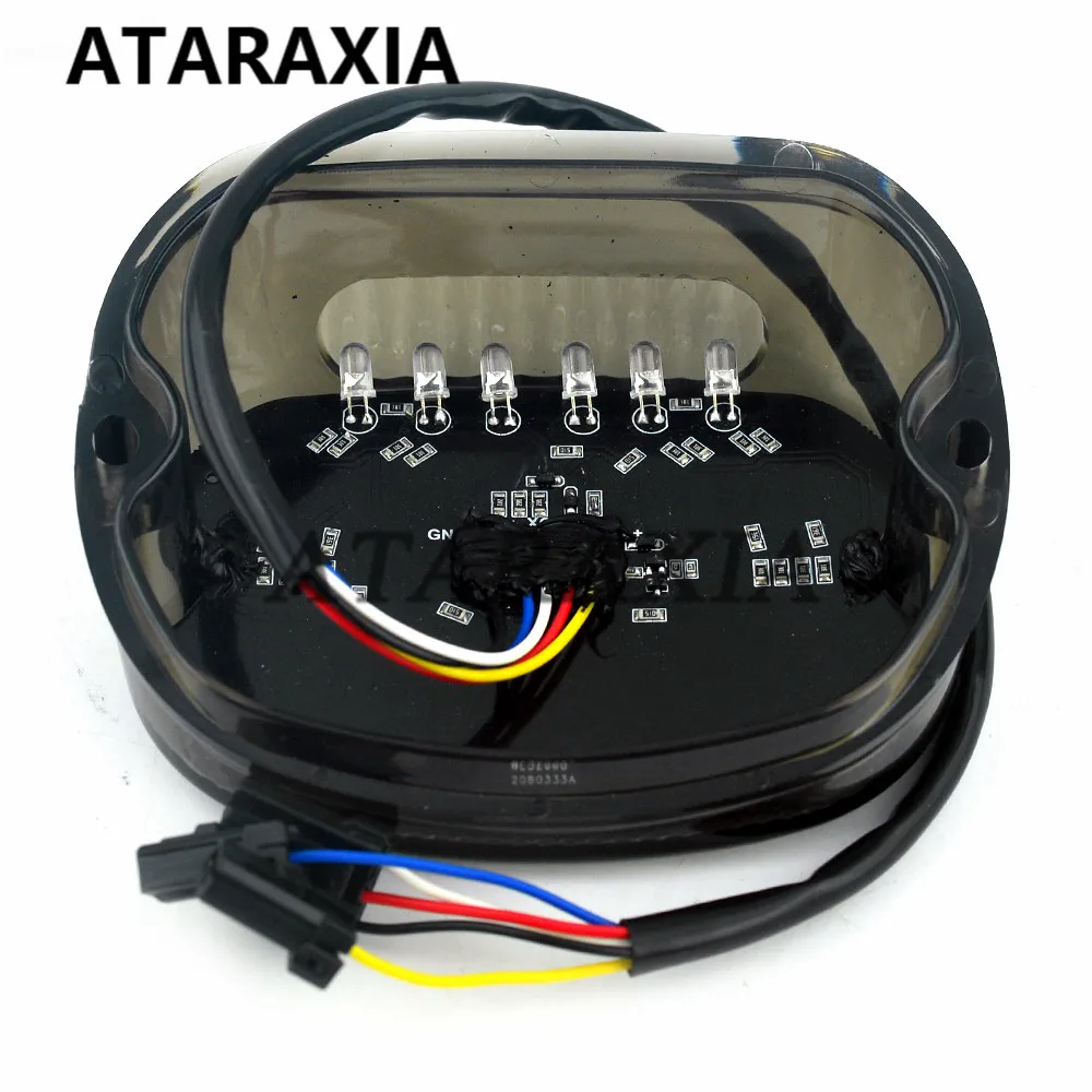Провод подключения: черный-земля, синий-ходовой светильник, желтый-указатель поворота светильник s & красный-тормозной светильник.