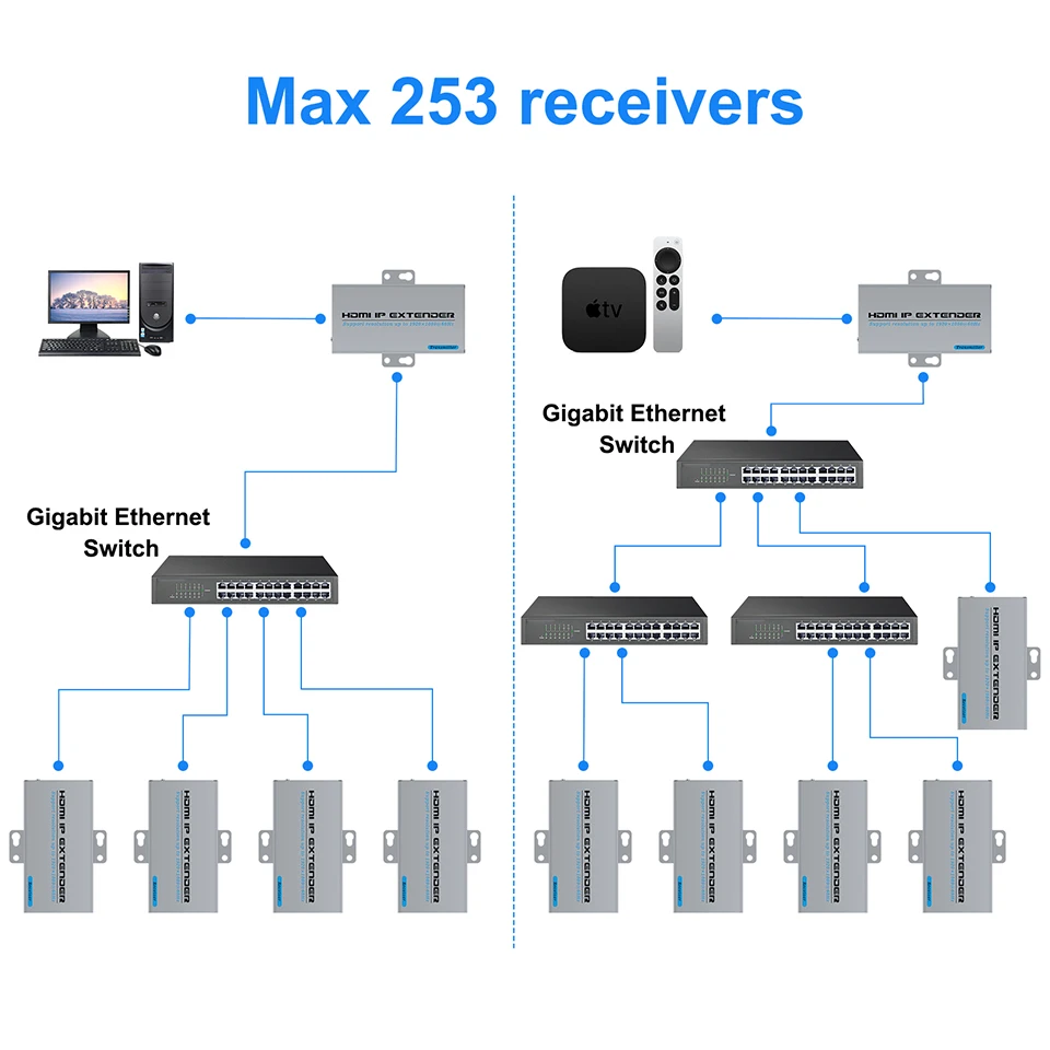 Transmission distance: CAT5:120m/400ft,CAT5e:150m/500ft,CAT6:200m/660ft