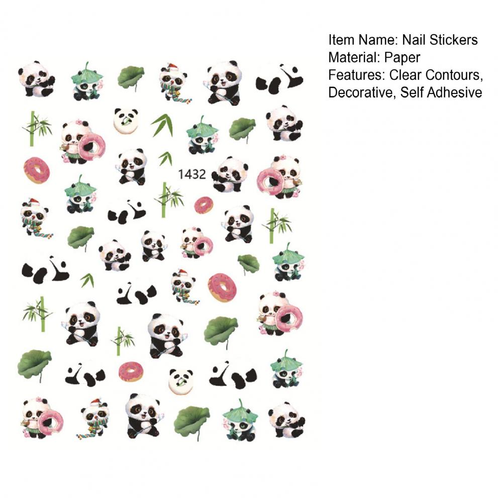 Designed with a cute panda pattern, this nail sticker is brightly colored with a clear outline and comes with its own adhesive backing, making it comfortable and portable.