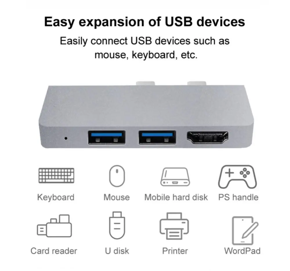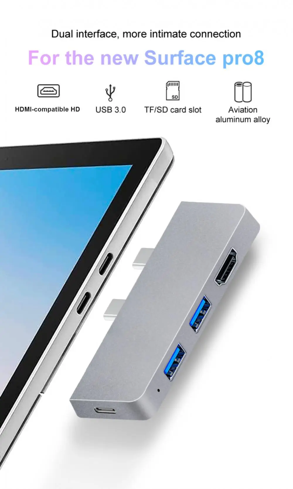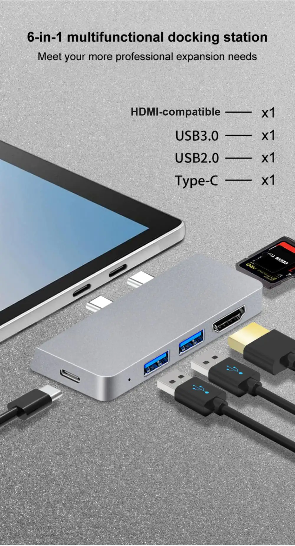 RYRA для Microsoft Surface Pro 8/9/X 5/6 в 1 USB док-станция с 4K HDMI-совместимый USB 3,0 слот для карт памяти