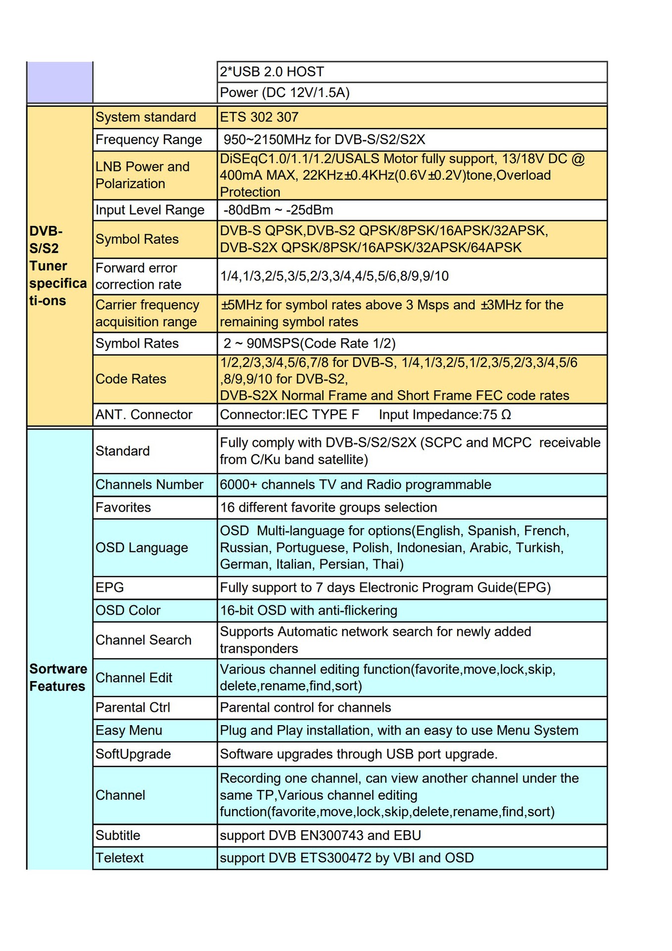 1. Поддержка DVB-S/S2/S2X, H .265(8 бит), AVS +,CCM, ACM, VCM,multi-stream/T2-MI