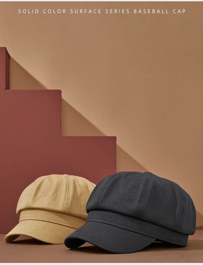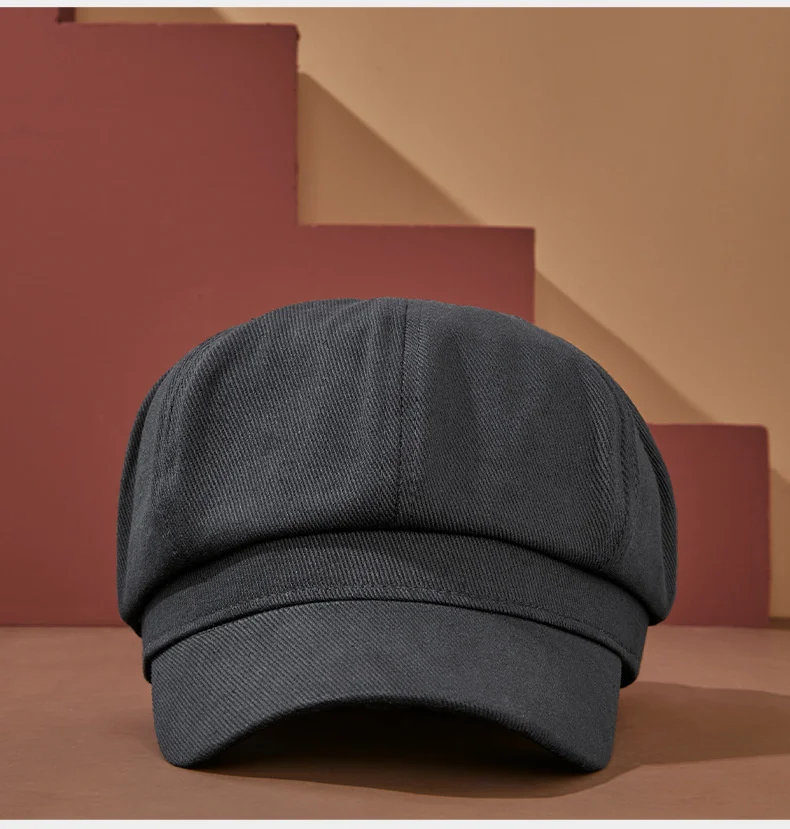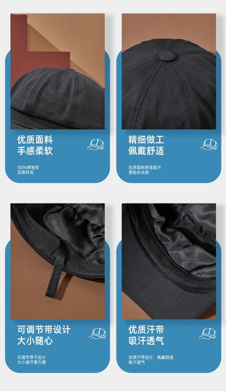 Кепка восьмиугольная унисекс хлопок в клетку стиле ретро цвет синий/оранжевый -