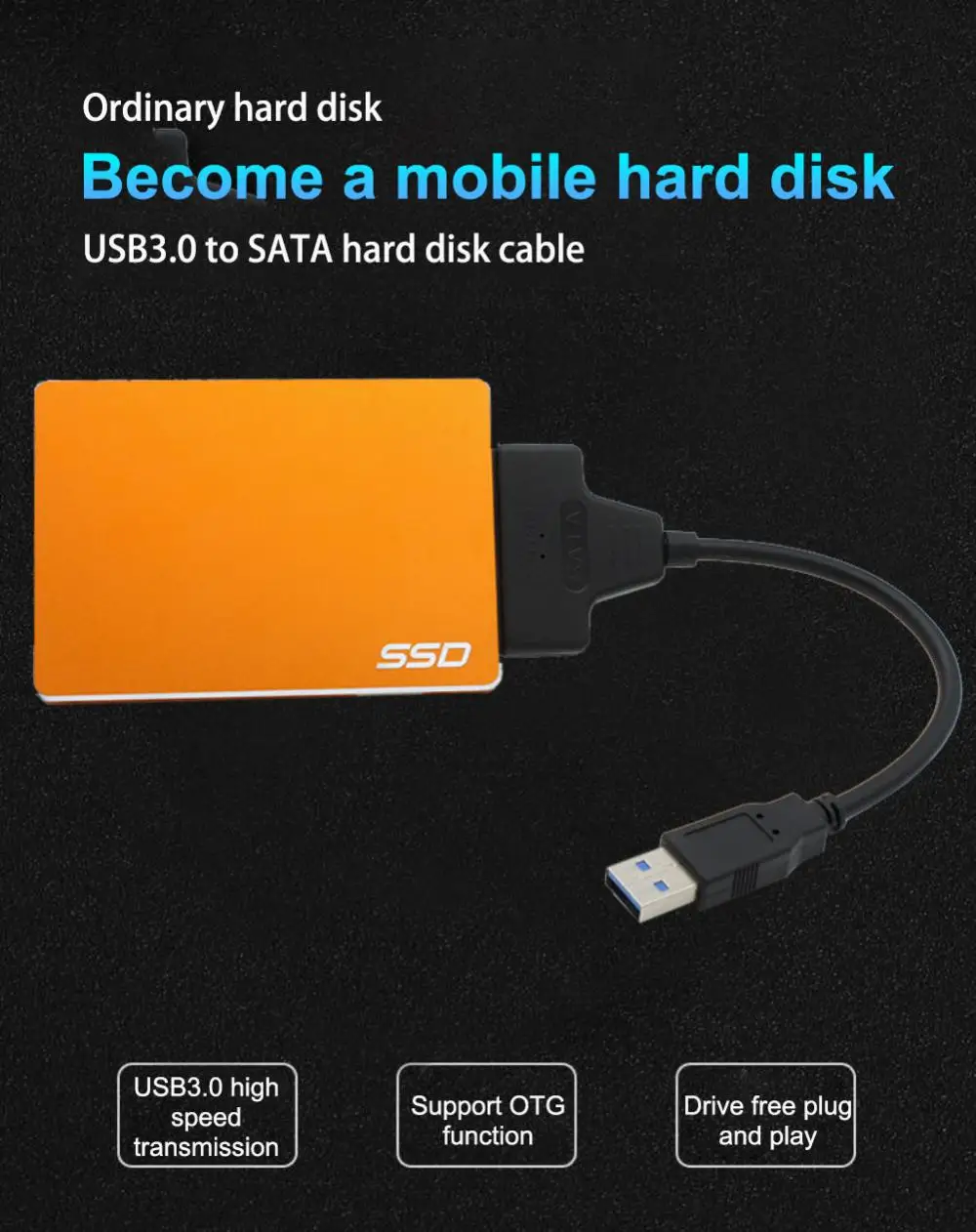 2. Этот кабель конвертера USB 2,0 3,0 к SATA подключает любой стандартный 2,5-дюймовый жесткий диск SATA или твердотельный накопитель (SSD) к компьютеру через порты USB 3,0. Это идеально подходит для резервного копирования файлов или обновления жесткого драйвера ноутбука.