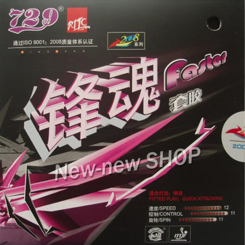 Attacking temple in with supreme spinning performance .On the basis of retaining the high-stickiness and high friction of 729 series temple in, it has the characteristics of even faster ball starting speed, low curve, and extraordinary front momentum. It is made by advanced mould manufacturing and processing technique and optimization and exquisite designing of rubber ingredients to make the colloidal particle translucent and crystalclear with delicate and soft appearance .The Faster spong of high elasticity and strong staying power to fullyplay the strong power of the glue. It is ideal weapon for attacking players who pursue speed and control ability.