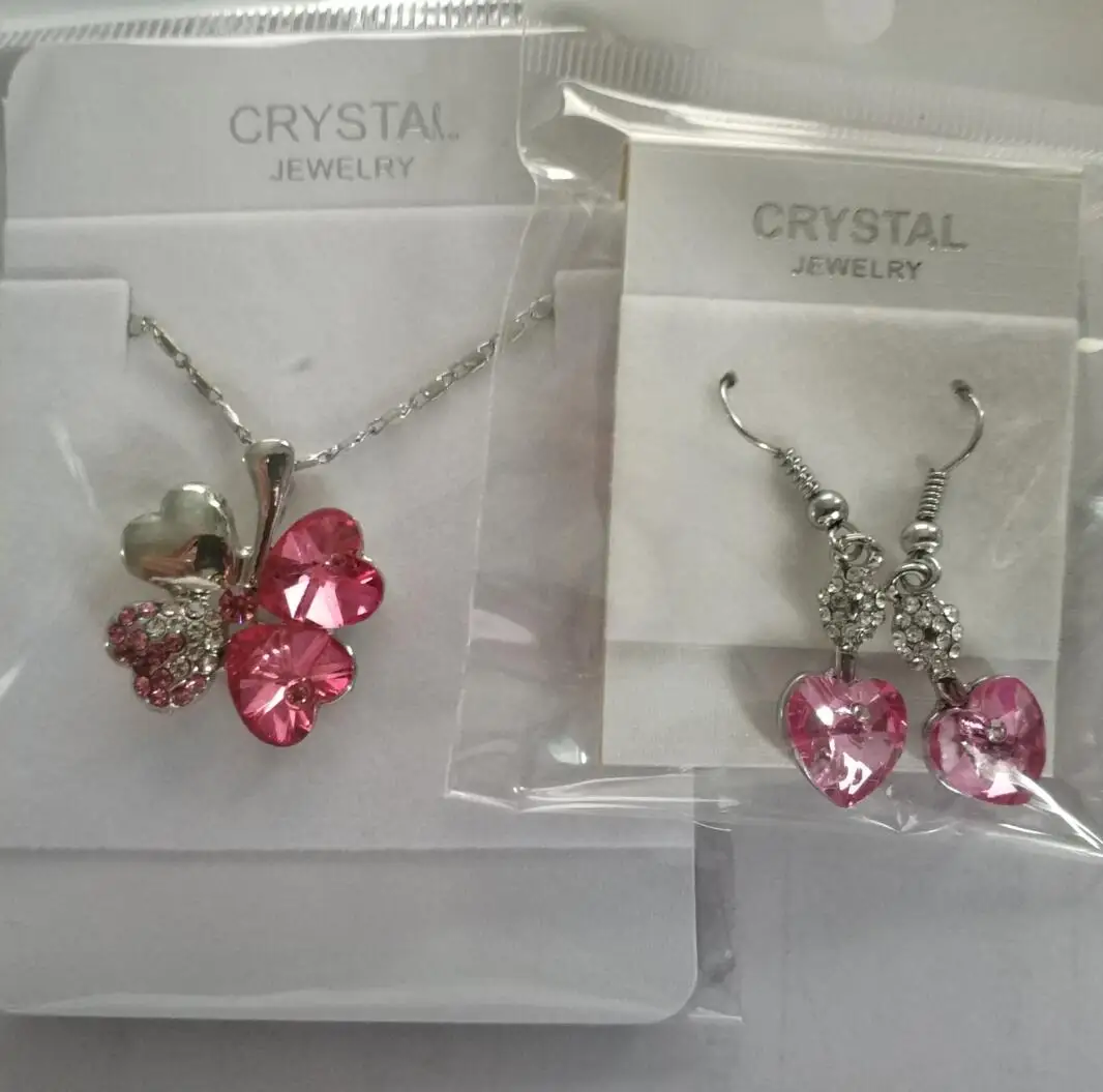 Crystal Clover 4 leaf leaves pendant Necklace Earring fashion jewelry Set girl accessories free shipping qulality floating heart