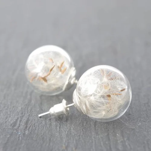 -Материал: стеклянный шарик, мягкая прокладка для серег, настоящие семена одуванчика