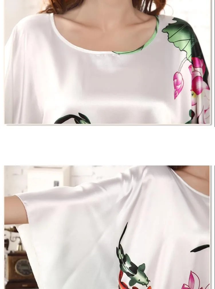Модное китайское женское шелковое вискозное банное платье юкатаНочная рубашкаОдин размер