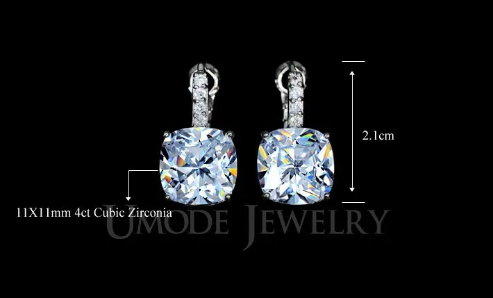 UMODE, фирменный дизайн, классический дизайн, 11 мм, 4 карата, женские серьги с большими фианитами (Umode UE0085)