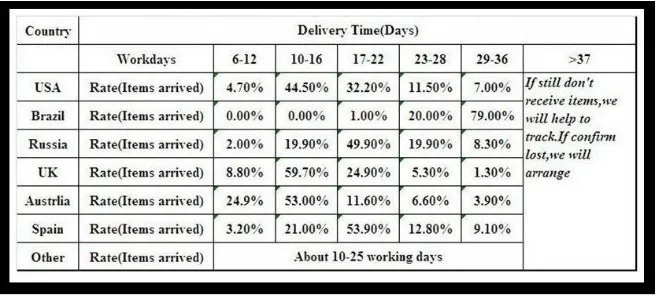 •Товары отправляются из Китая авиапочтой, доставляются в большинство стран в течение 20-30 рабочих дней.