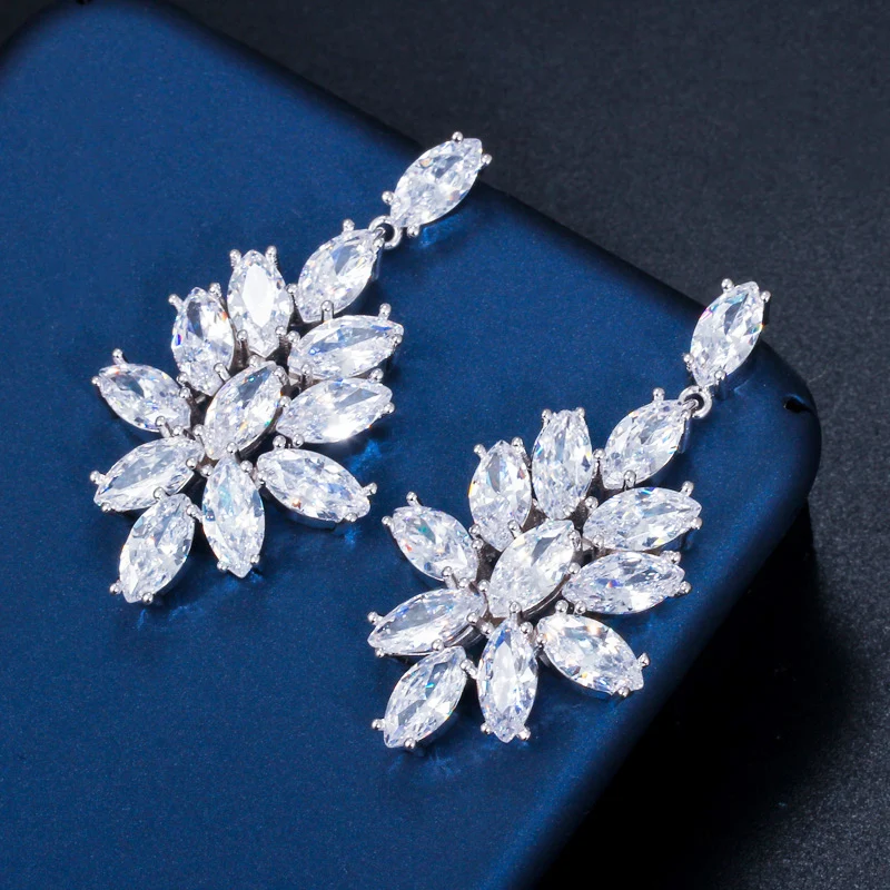 CWWZircons Потрясающие Белые CZ кристалл большие длинные висячие Висячие свадебные серьги для женщин Свадебные украшения Аксессуары CZ039