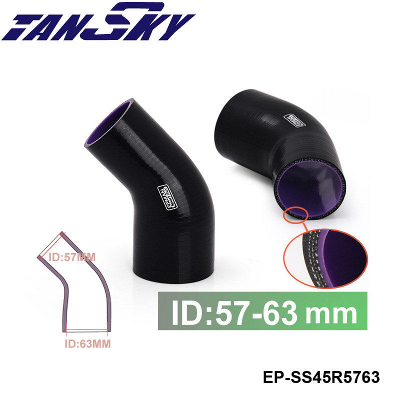 Поворот-EPMAN 2,25 "-2,5" 57 мм-63 мм шланг силиконовый редуктор трубопровод соединителя 45 градусов 4-слойный черный EP-SS45R5763