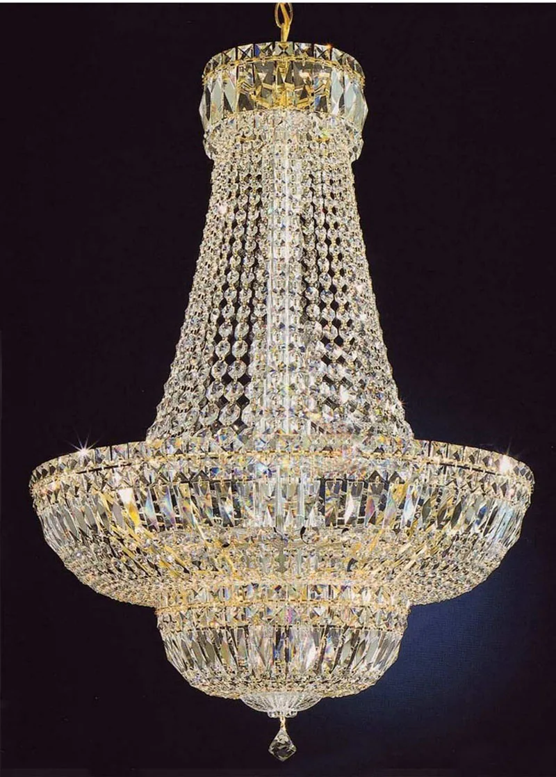 Особенности:1. Этот потрясающий 18-светильник в стиле Эмпайр, хрустальная люстра, использует только высококачественный материал и качество изготовления, обеспечивая красивый образ. Благодаря блестящему золотому Отделу и мелко вырезанным кристаллам премиум класса этот элегантный светильник-люстра придаст любой комнате блеск и гламурность.2. Из коллекции Empire3. Высококачественная полированная отделка из золота или хрома, с точным разрезом и полированными кристаллами свинца для максимального блеска и блеска, а также может создать некоторые радуги.4315-в Д х 31,5-в Ш х 39,37-в (длина х ширина х высота)5. Использование цоколя лампы E14 или E12, будет произведено в соответствии с национальными стандартами безопасности покупателя.