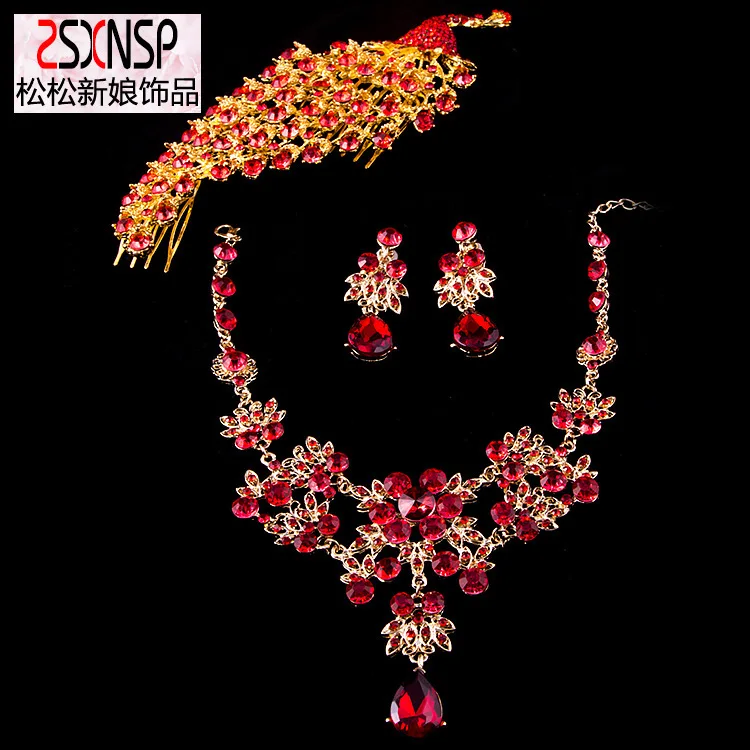 Красное ожерелье Корона Комплект из трех предметов Свадебная...US $11,50