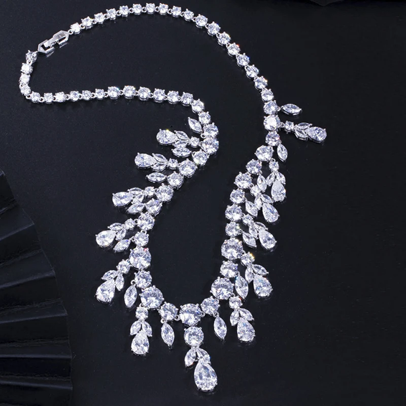 ThreeGraces Роскошный белый золотой цвет кубический цирконий кристалл большой капли воды Свадебные обручальные ювелирные наборы для женщин подарок JS103