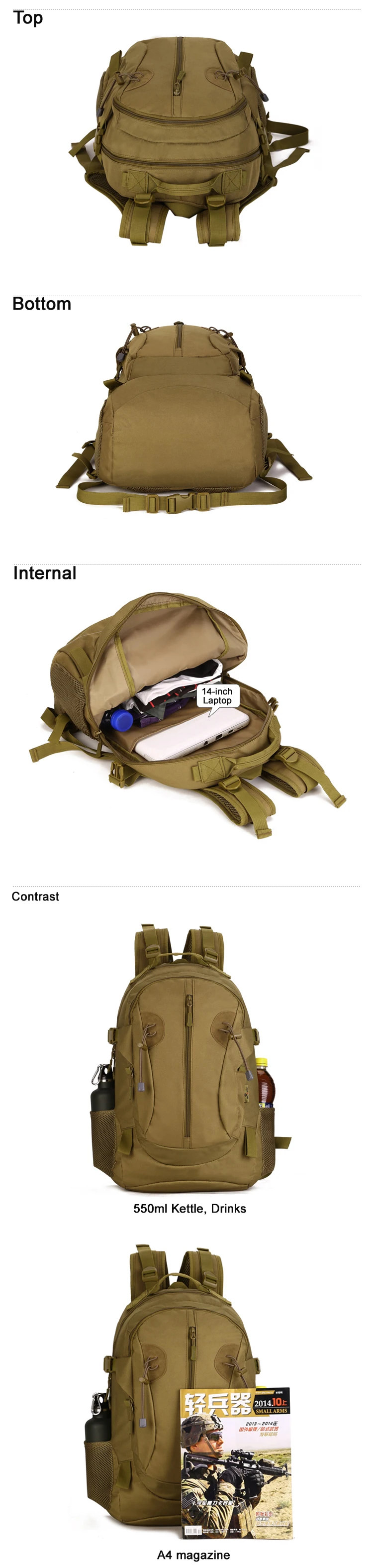 Наименование товара: защитный рюкзак для охоты Материал: прочная нейлоновая ткань Подкладка: высококачественный мерсеризованный хлопок Размер: длина: 30 см, ширина: 15-22 см, высота: 50 см Вес: 1000 г Функция расширения MOLLE Широкие ремни Хорошо проветривается Регулируемый поясной ремень Примечание 1: цвет может немного отличаться из-за настроек монитора компьютера. Примечание 2: при разнице в способе измерения допускается отклонение в размере на 1-3 см. Примечание 3: новая сумка только что пришла с фабрики, поэтому может быть небольшой запах. |
