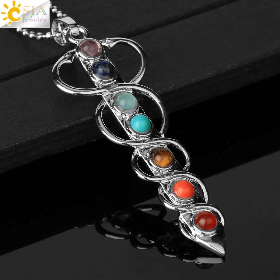 CSJA подвеска с бусинами из камней ожерелье символ йоги инкрустированные рейки энергия камень Исцеление Точка 7 Шарм в виде чакры кулон ожерелье E039 | |
