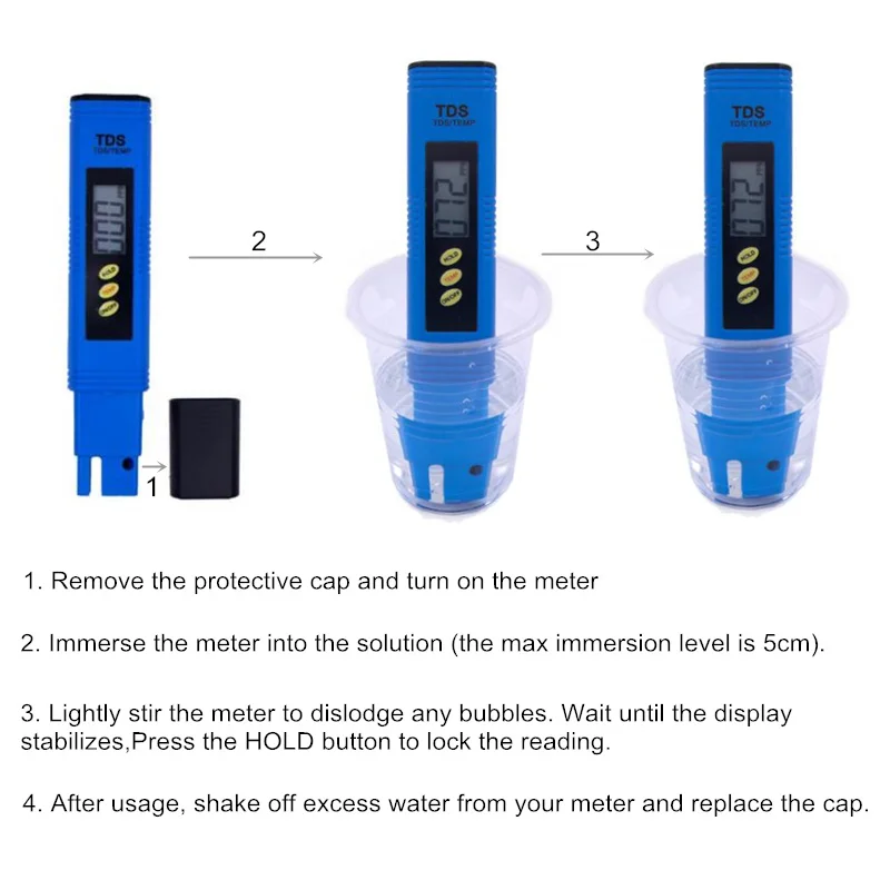 1. Не сбрасывайте весь tds метр в воду и Не погружайте его за пределы максимального уровня погружения. Может иметь разный метраж, не является водонепроницаемым.