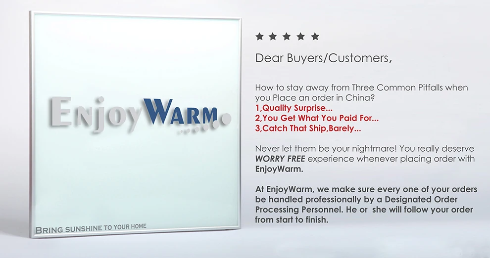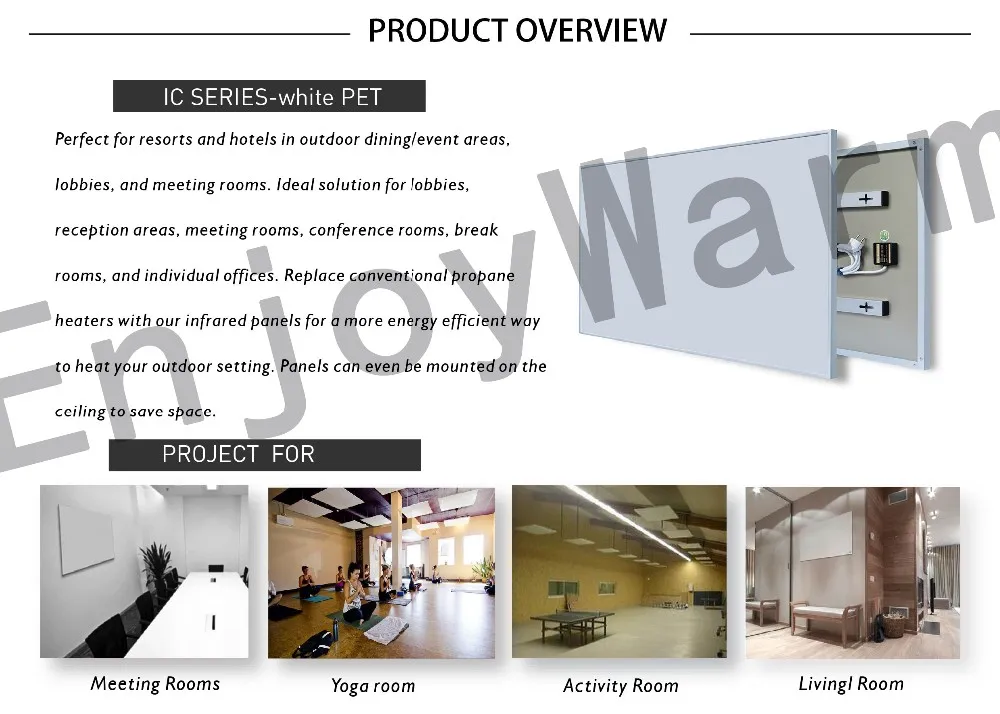 О: ENJOYWARM инфракрасные обогреватели предназначены для внутреннего отопления, поэтому не рекомендуется использовать их на открытом воздухе.
