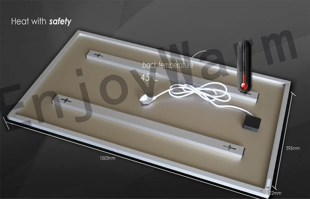 О: все обогреватели ENJOYWARM сертифицированы как безопасные для использования по стандартам TUV, CE, ROHS, IP54 (стандарты безопасности, необходимые для использования на рынке ЕС).