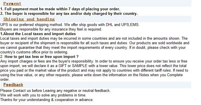 Пожалуйста, свяжитесь с нами, если у вас есть какие-либо вопросы о наших доступных размерах.
