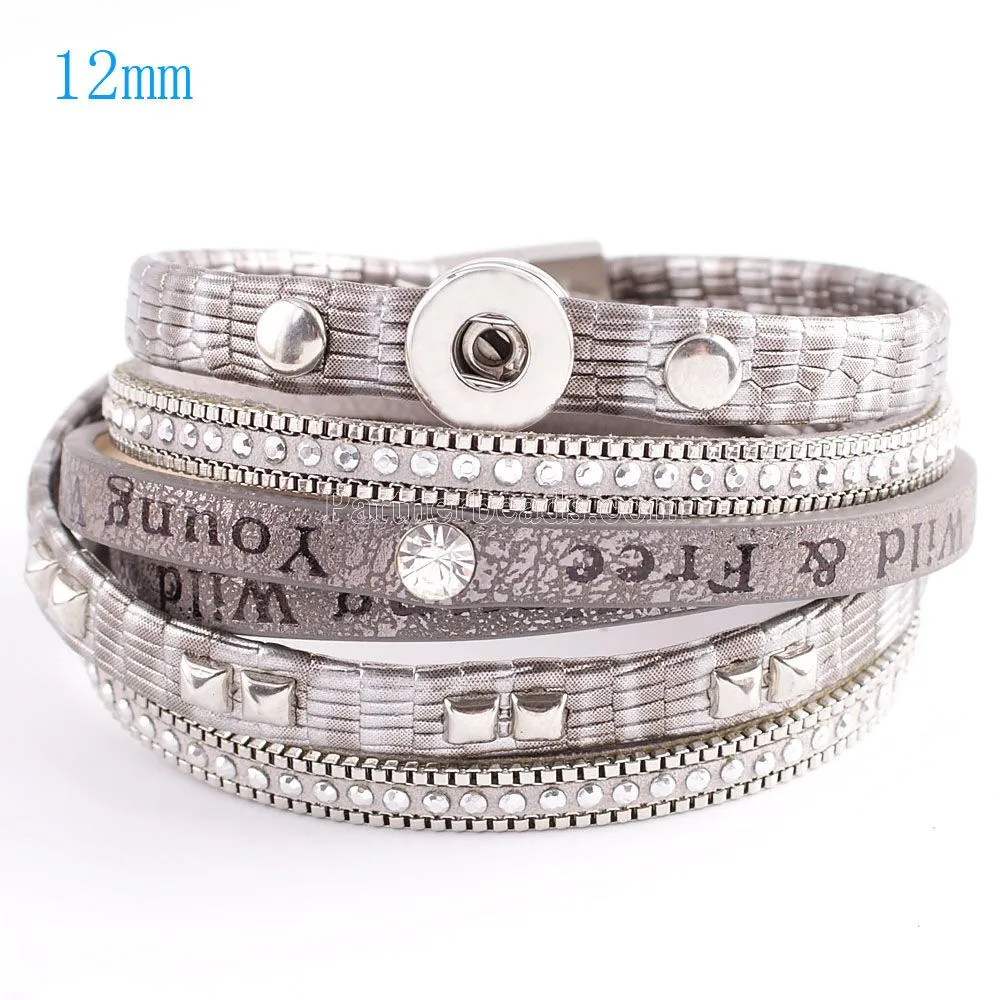 Partnerbeads 40cm 1 Snap 12mm Button Pu Leather Metal Button Charm Bracelet Interchangeable Jewelry Free Shipping KS0602-S