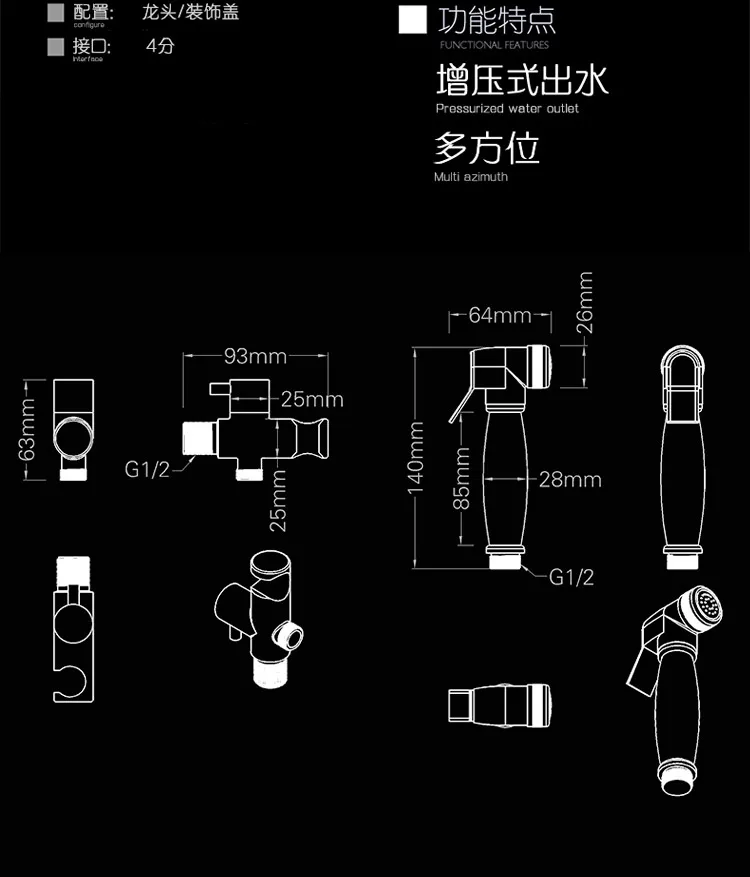 1 комплект высококачественный латунный биде-распылитель для туалета черный