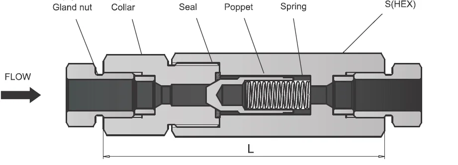 ☆При падении дифференциала ниже давления растрескивания клапан закрывается.