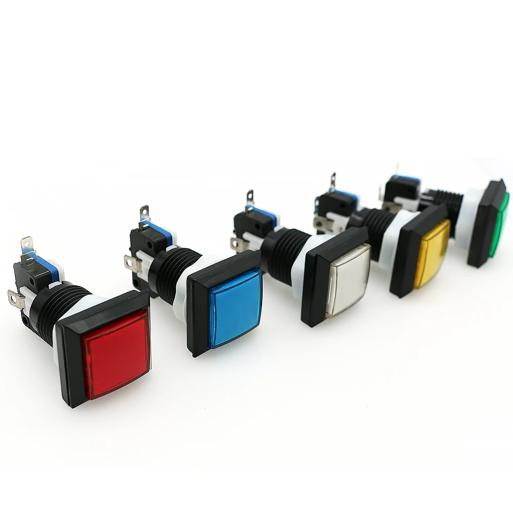33 мм квадратный игровой автомат Кнопка аркадный светодиодный Мгновенный Кнопка с подсветкой
