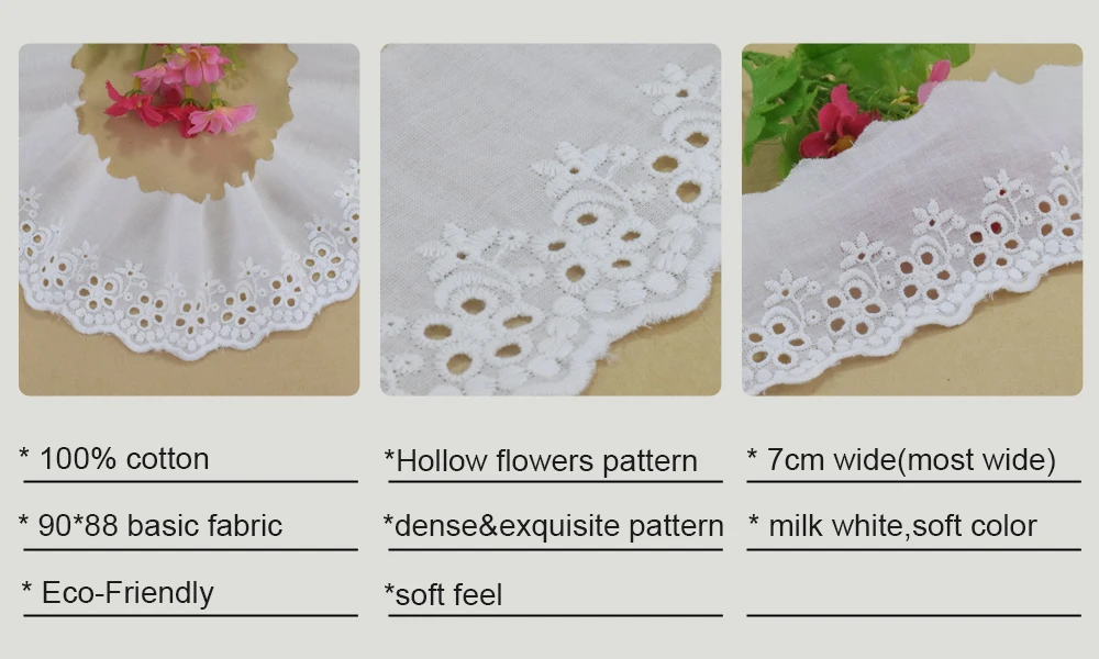 Название продукта:7 см ширина 100% хлопок EmbroidКружево