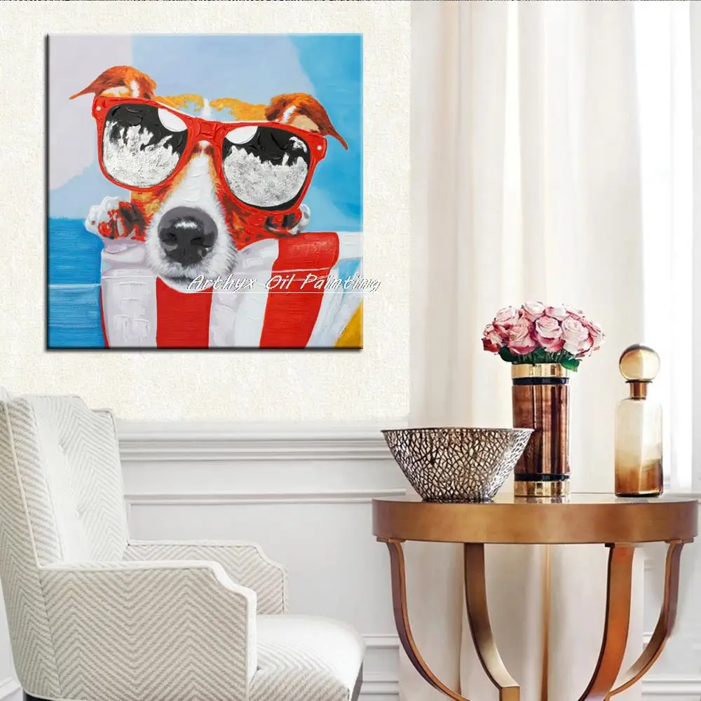 Arthyx ручная работа красочные милые маленькие животные Собака Картина маслом Современный Холст Настенная картина для детской комнаты украшение дома